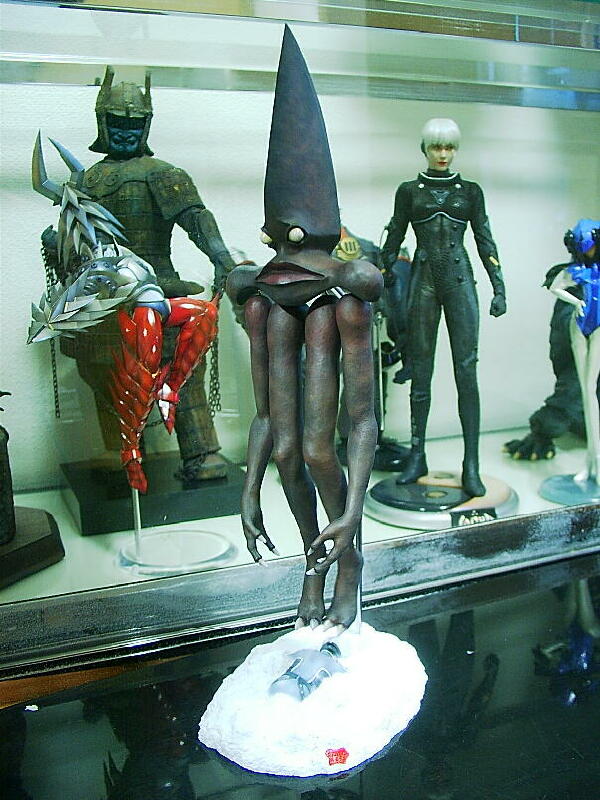 | 雪山で意識もうろうとなったダンの意識に現れたポール星人、その一場面を30pサイズで見事に立体化してのけた高垣さんの遊び心に乾杯!!(笑)。ベースにあしらわれた雪に埋もれるダン、そして手足ブラブラに製作できるポール星人、まさにやったモン勝ちのアイデア勝負に脱帽ですな!作っててすっごい楽しかったです。キットには手足をブラブラにするためのクリップが付属してるんですが、抜け落ちたら困るのでネジ式の金具をホームセンターで探してきてそちらで代用しております。塗装は映像ではシルエット逆転の影のようなポール星人しか確認できないので、オリジナルの型から抜かれたレプリカのモノを参考にしております。実際は間抜けな黒目や三角の鼻もあるのは映像からも気持ち確認できるのですが、高垣さんもあの映像のイメージからわざと黒目も鼻も省いた造形にしたそうで、自分もそうさせていただきました。少年リック限定のガンダーに付属する設定通りのポール星人のような顔に塗る勇気は自分には無かった。。。。レプリカの白目もカッコいいしエエですよな!ちょっと画像では判りづらいと思いますが、かなり全身に模様を書き込んでます、レプリカのあの質感を再現しようとがんばったのですが見て取れますでしょうか?高垣さん曰く、「クール、ヴィラ、チブルの系譜はこのポール星人において完結します」。。。。アレ?プラチクの骨は〜?(昔、レジンシェフとうけけ団から出てたような気がする。。。?) |