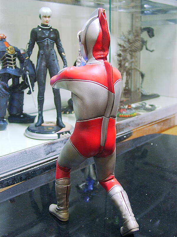 この新マン、どのバージョンか疎い自分には判らなかったのですが、胸のエッジがゆるいのと太もものモールドが凸モールドでは無く、縫い目モールドになっていたので本編ではなく、またA、ゾフィーとAの項目にアレイドウルトラ作品をアップしてたので新マンも仲良くこちらにてアップしております(笑)。かつて新マンはファルシオンから伝説ともいえるキットが出ていたので今更ながらこの題材に挑むのはかなり勇気のいった事だとは思いますが見てのとおり浅川氏らしい素晴らしい造形にてまとめられ、レジンキットでありながら電飾加工も可能、もしくは電飾キット込みの加工済みキットとしてまで販売されているといった力の入れようであります。最近ではビリケンのソフビや少年リックからも素晴らしいレジン版キットも(完成版玩具品も)発売されそのジンクスも崩されてきたのかな〜とも思い新しいキットに触れられるファンにはうれしい事ですな!